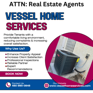 Ready to enhance your real estate business? Contact Vessel Home Services today to learn more about our HVAC solutions and special offers for real estate professionals. Let’s work together to deliver comfort, quality, and satisfaction in every property transaction! 480-890-0848